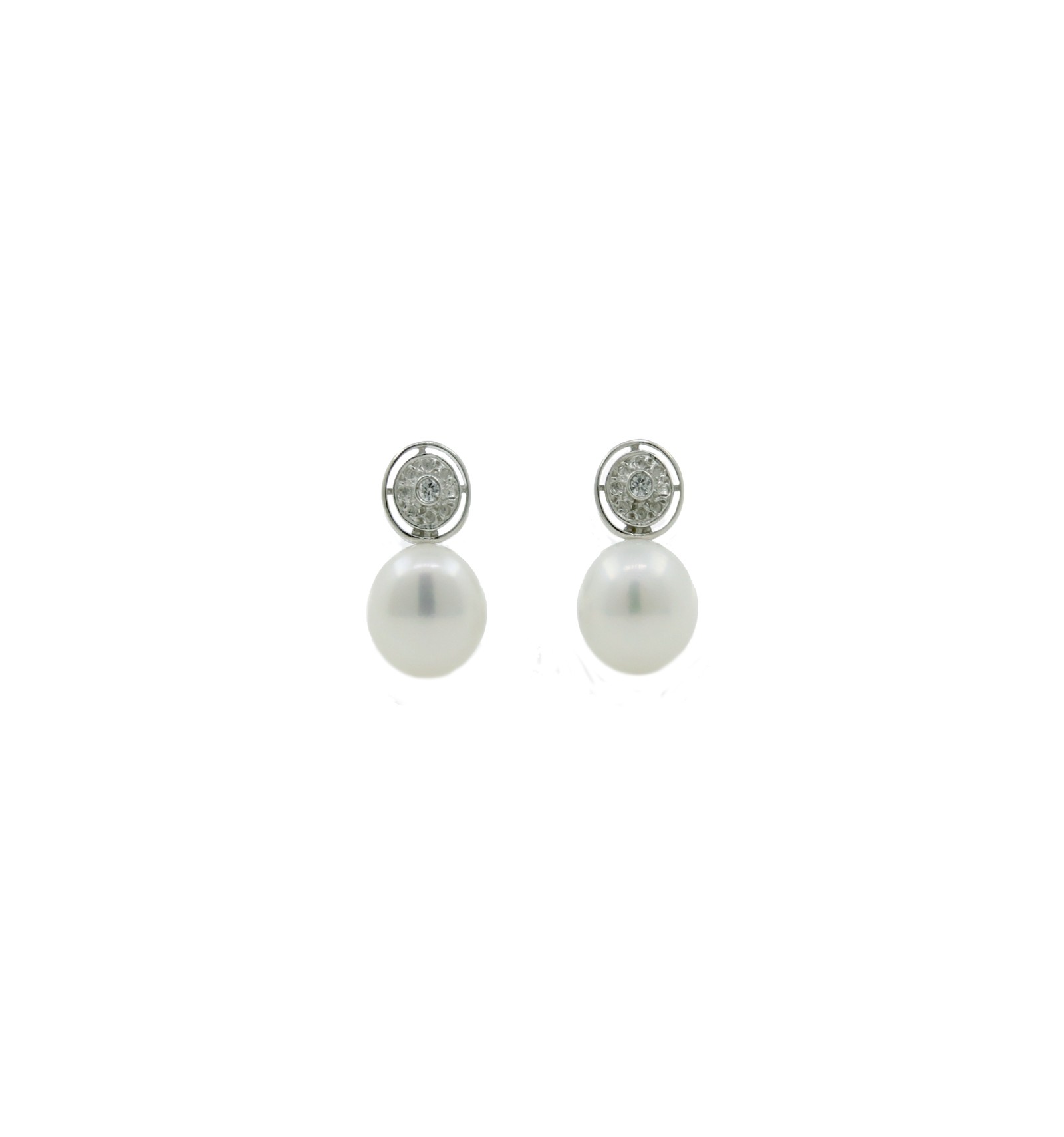 Par de pendientes de plata de 925 milésimas con perla cultivada y circonitas.
