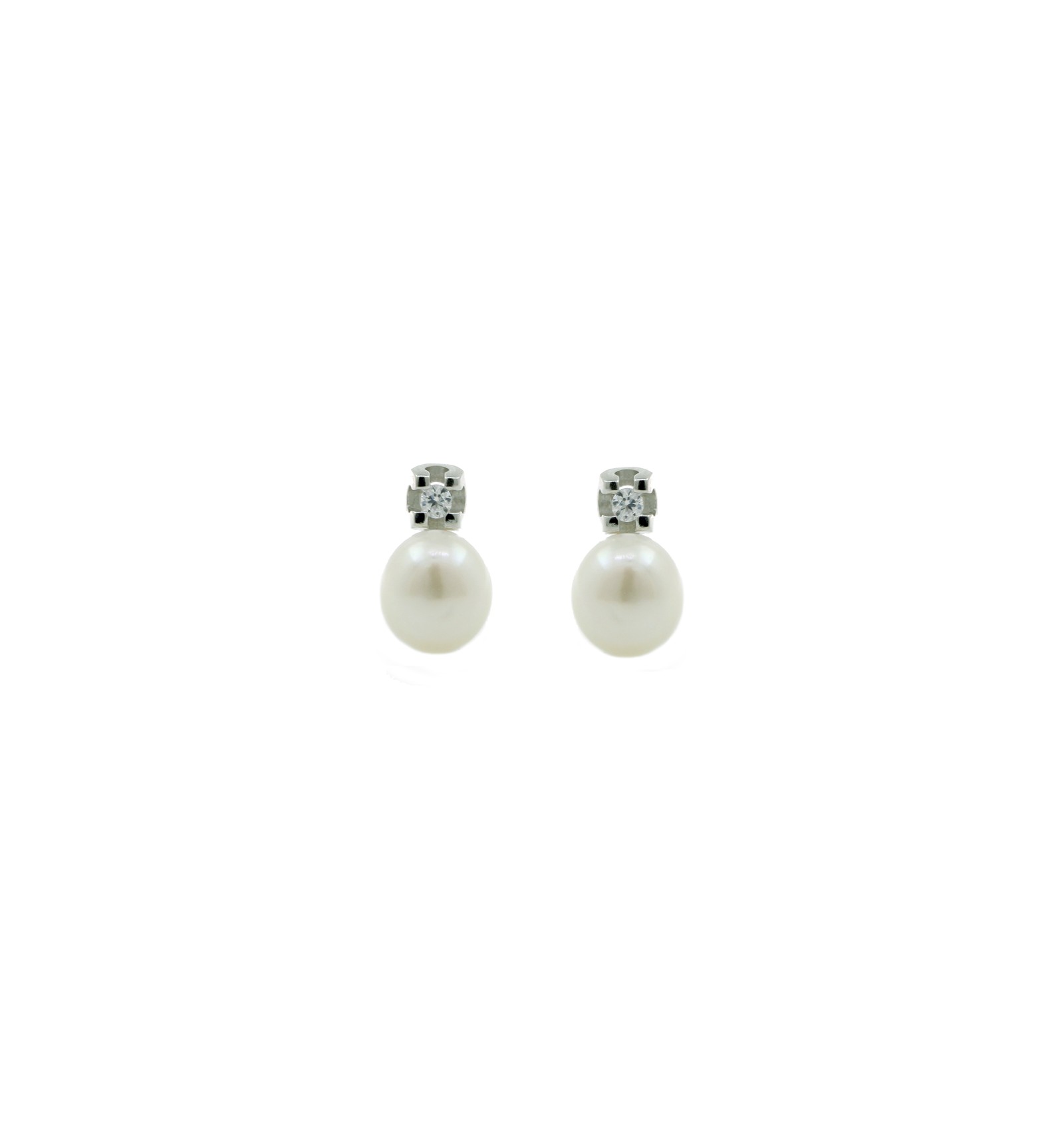 Par de pendientes de plata de 925 milésimas con perla cultivada y circonitas.