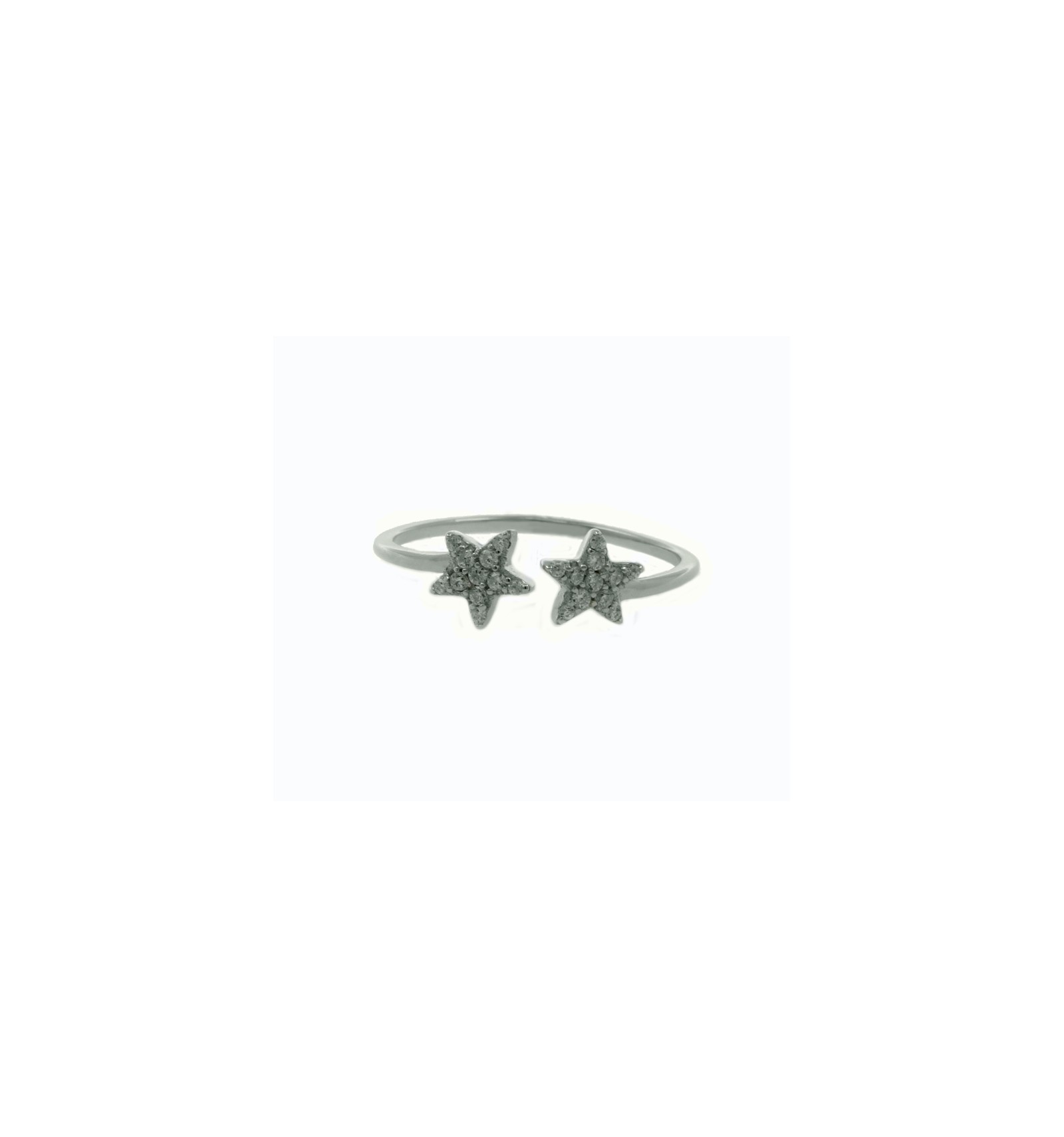 Montura abierta de plata en brillo con circonitas blancas engastadas en dos estrellas.