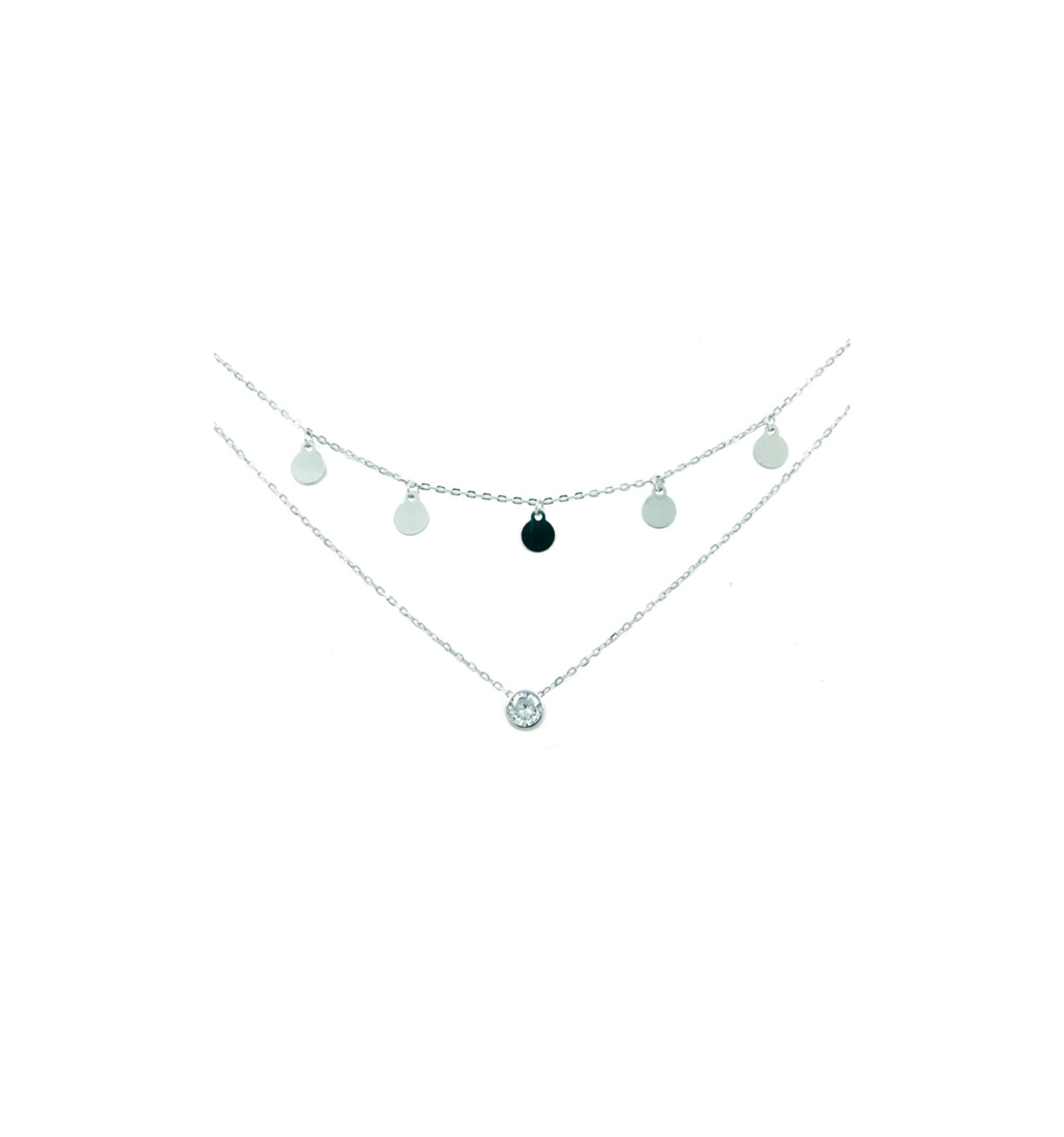 Doble cadena con colgantes a distinta altura de plata de 925 milésimas.
