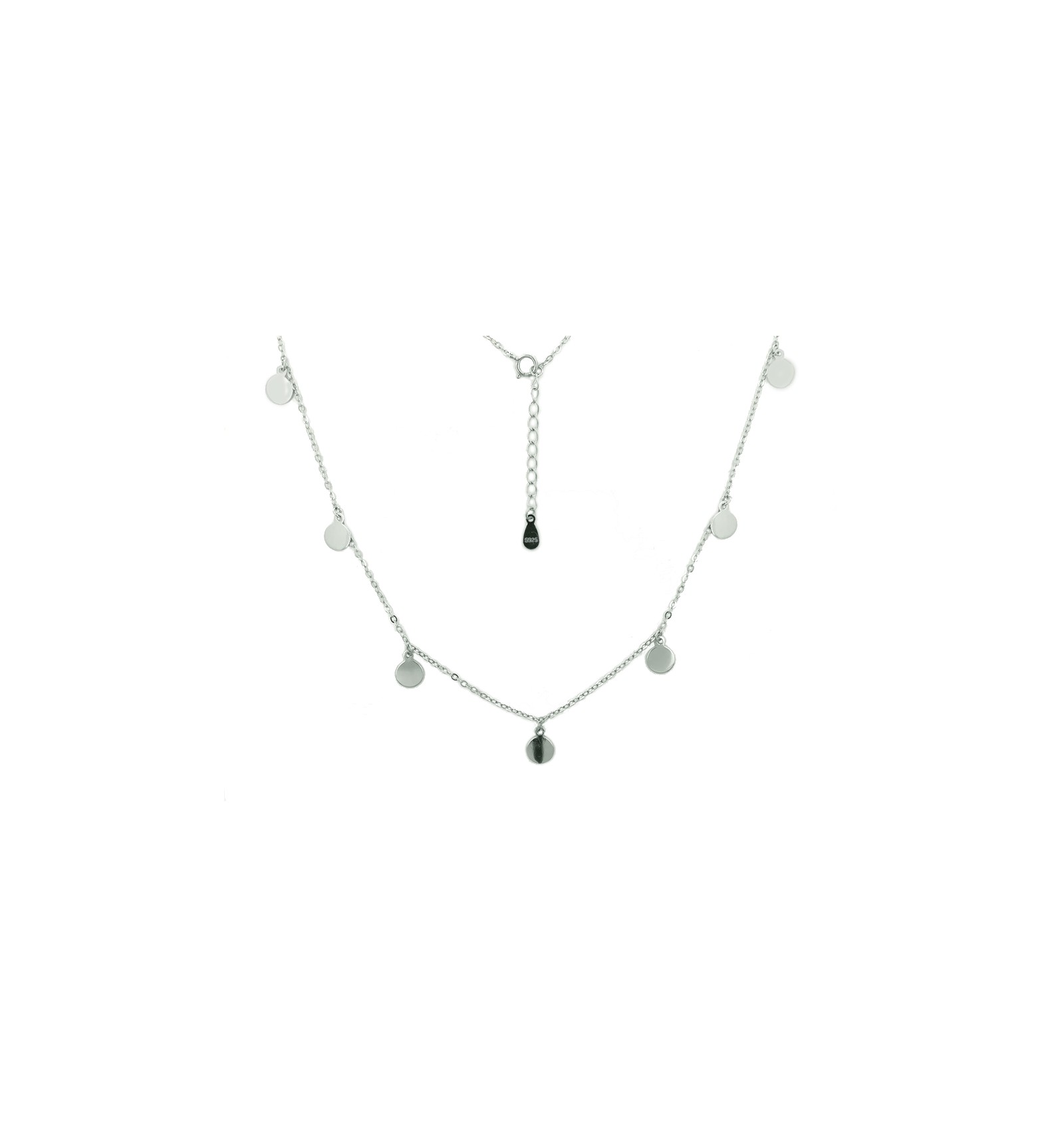 Cadena con siete chapitas en forma redonda. Todo plata maciza de 925 milésimas.