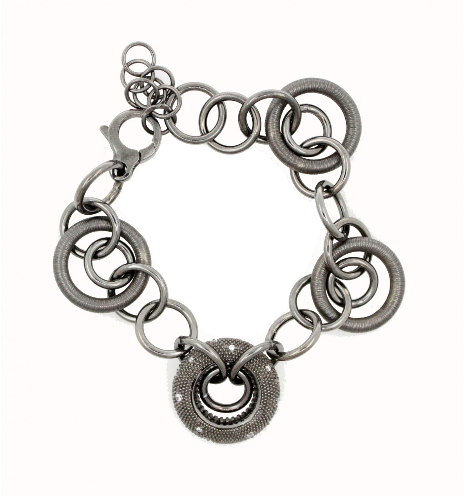 Pulsera de plata de 925 milésimas con baño de rutenio y circonitas.