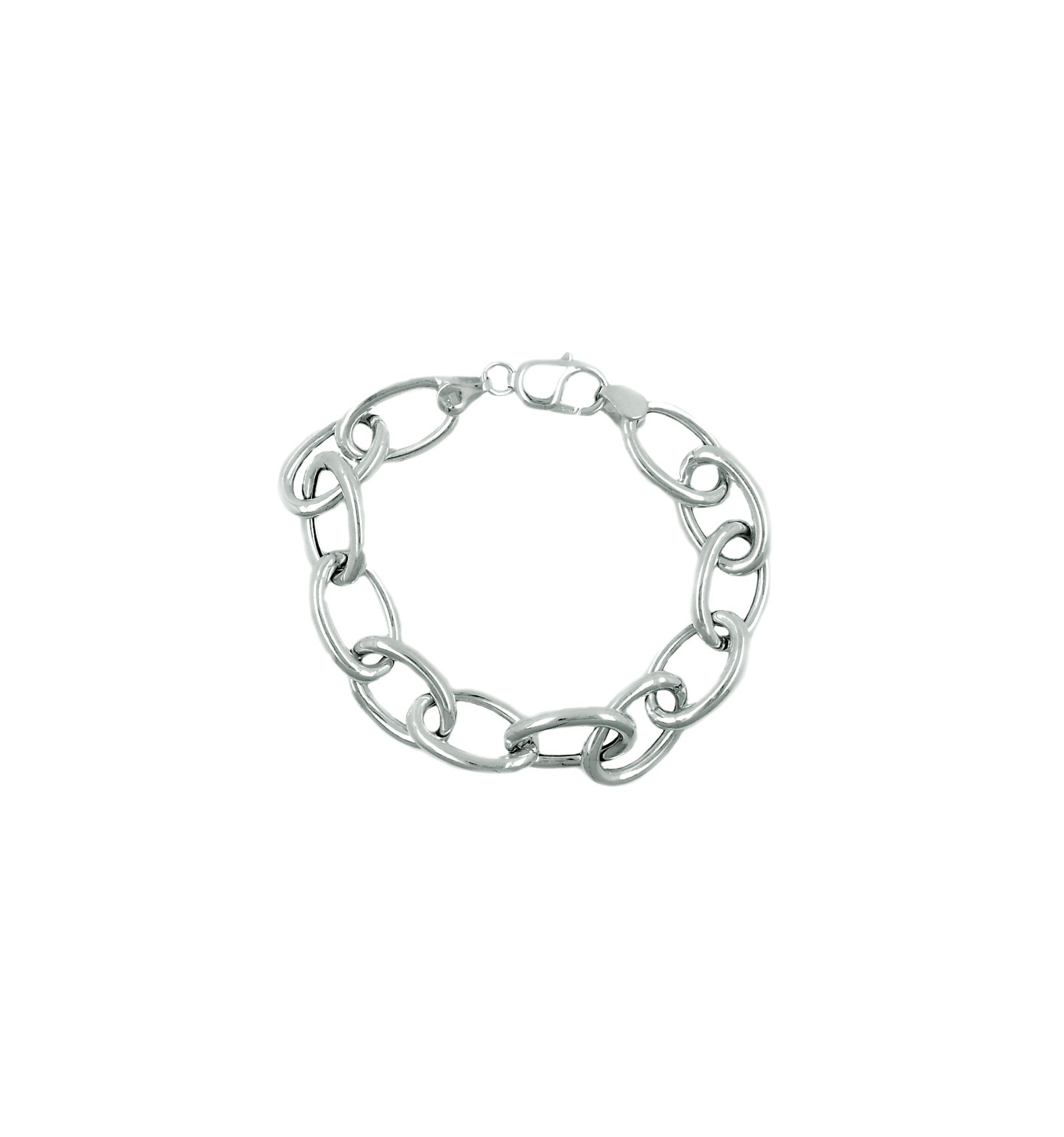 La pulsera, toda en brillo, tiene una anchura de 9.80 mm y el grosor de los eslabones es 2.30 mm.