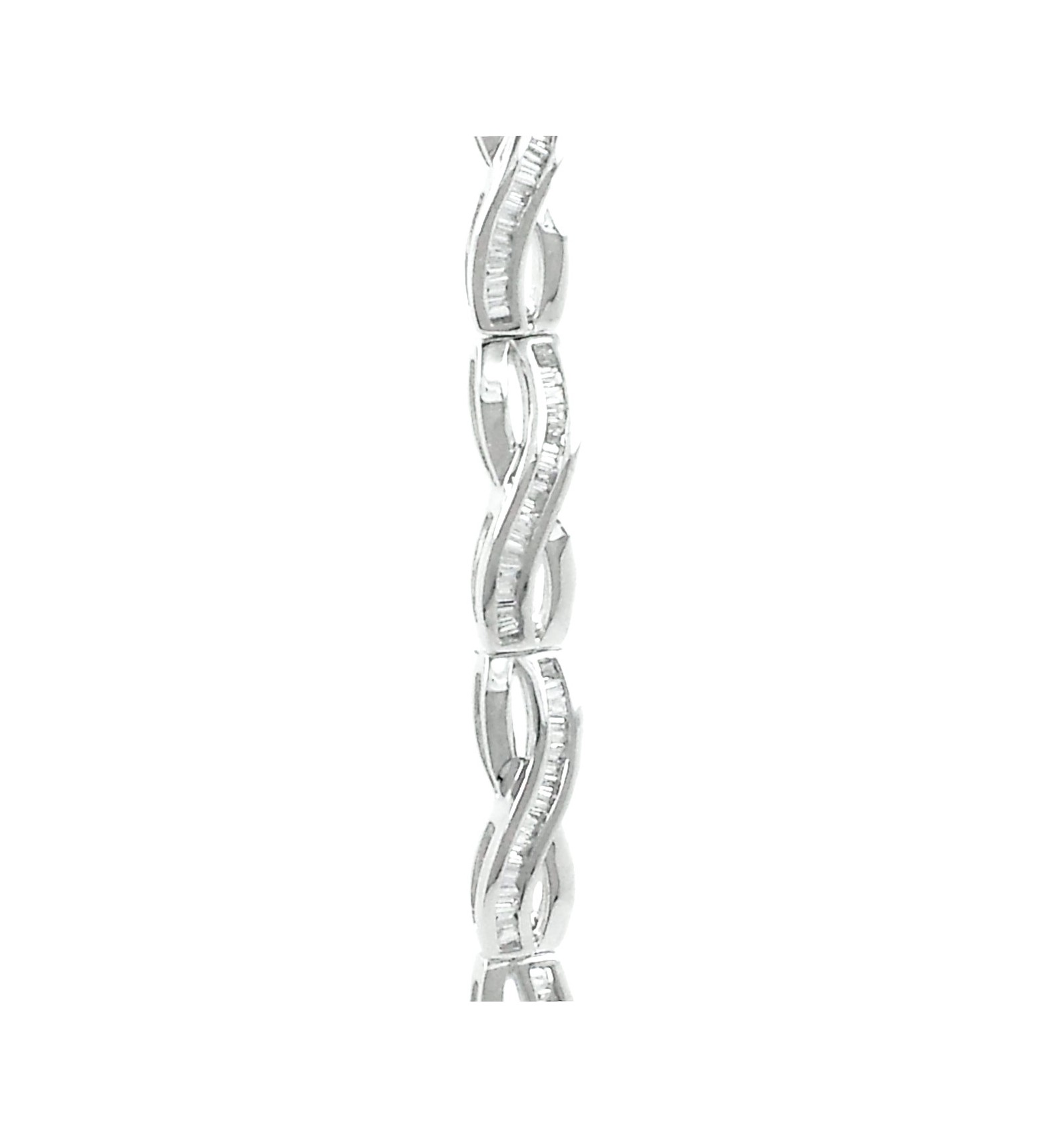 Pulsera de oro blanco de 750 milésimas (18K) con 220 diamantes talla baguete.