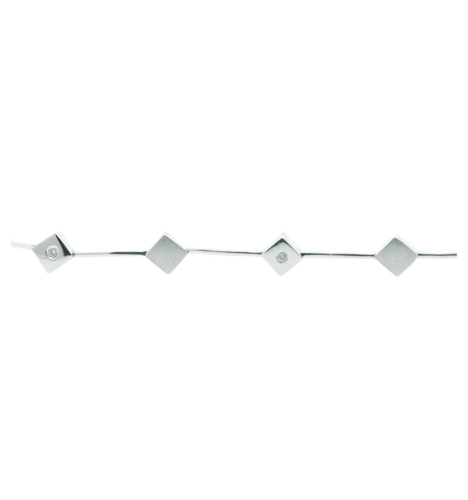 Pulsera con motivos en mate y brillo, con 5 diamantes talla brillante engastados en chatones cuadrados.