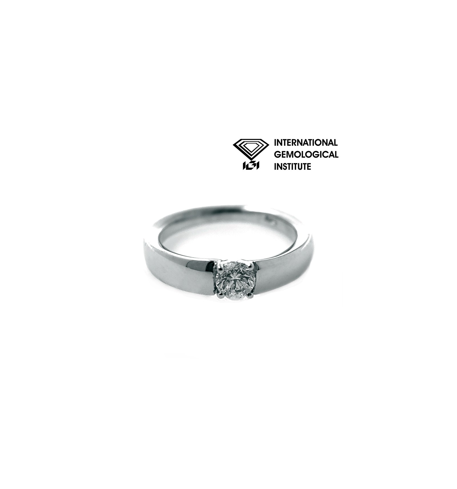 Solitario de oro blanco de 750 milésimas (18K) con un diamante talla brillate.