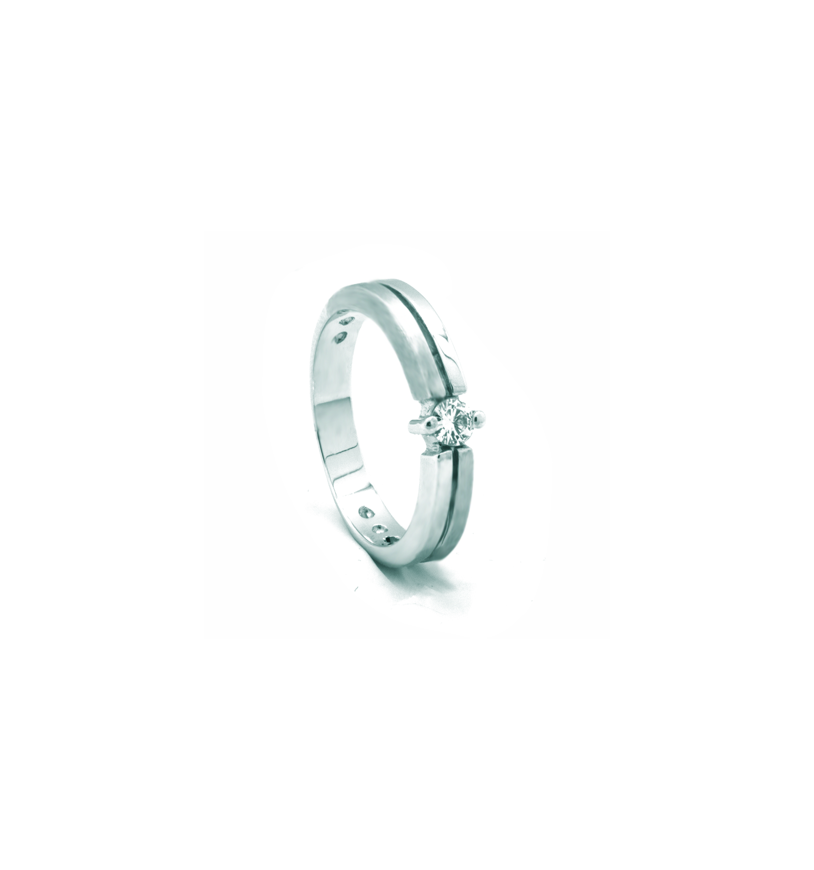 Montura de oro blanco combinado en mate y brillo con un diamante engastado en garras.
