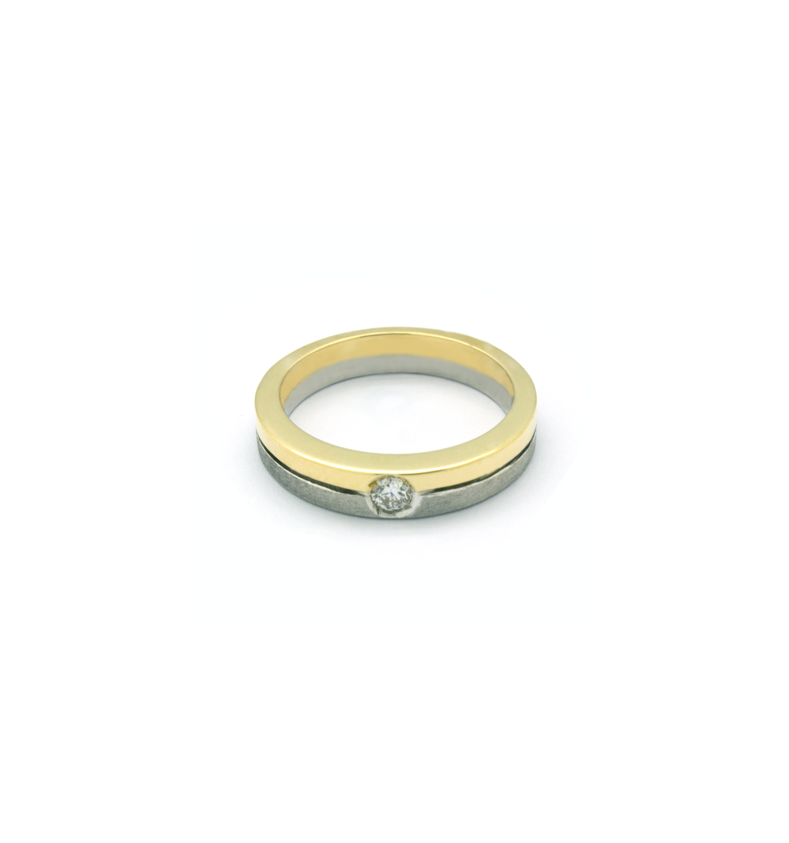 Solitario de oro blanco y oro amarillo de 750 milésimas (18K) con UN diamante talla brillante.