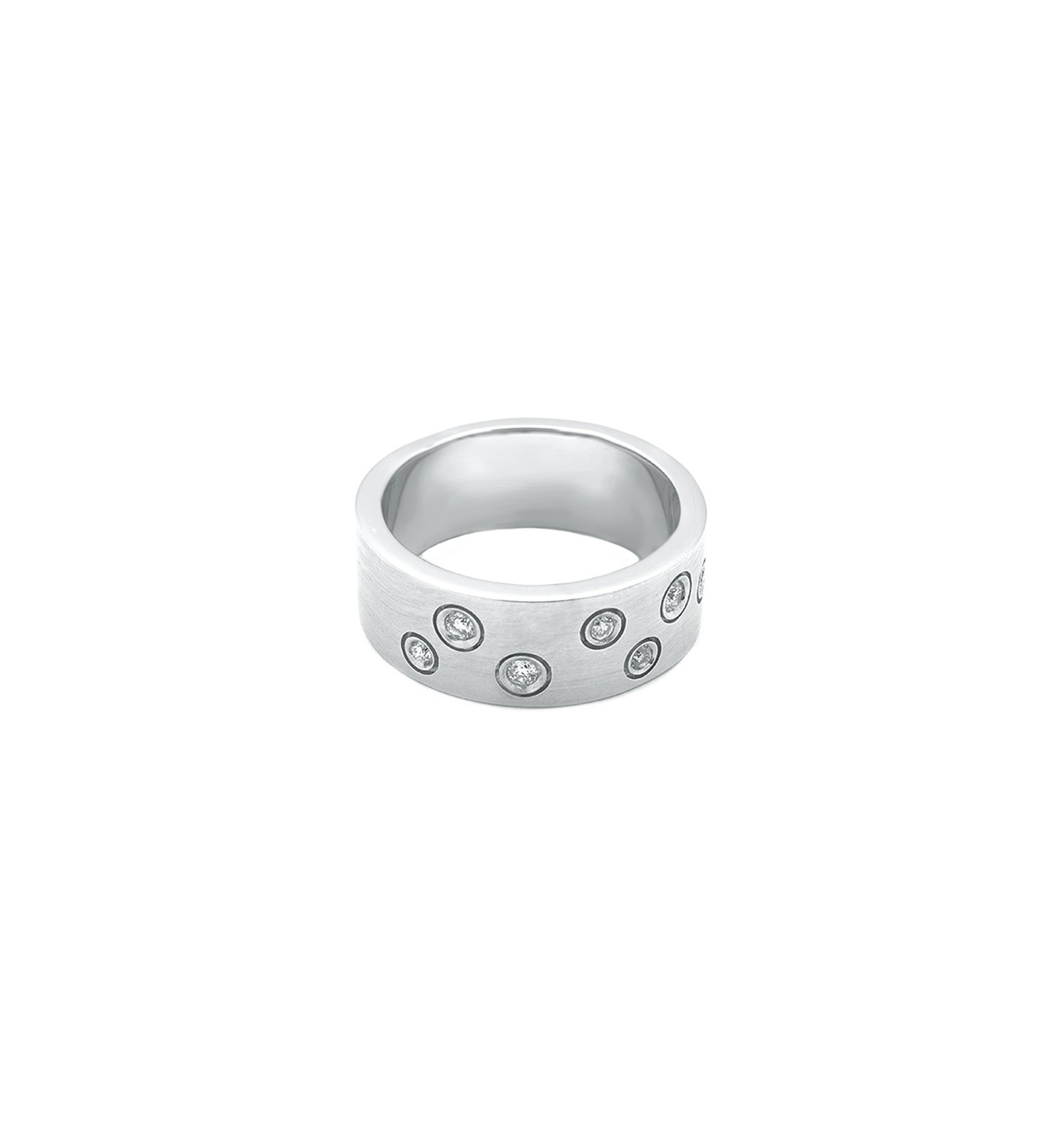 Montura de oro blanco en mate con 7 diamantes talla brillante.