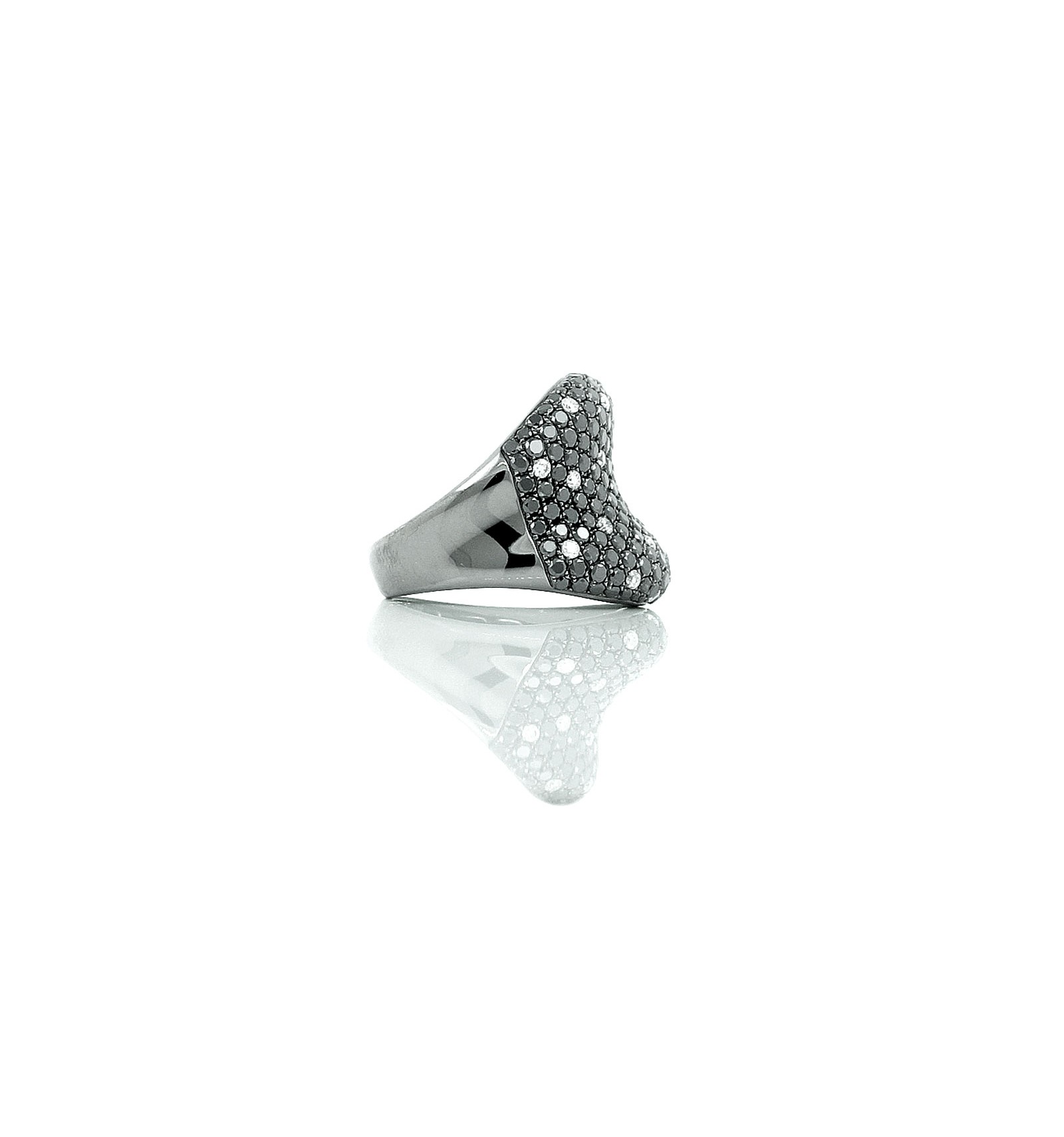 Con 200 diamantes negros talla brillante y 25 diamantes blancos talla brillante.