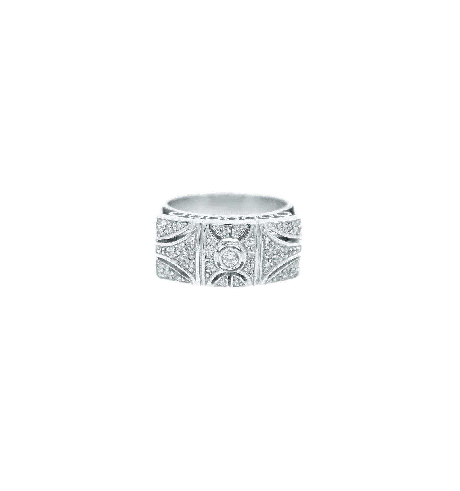 Sortija de oro blanco de 750 milésimas (18K) con 39 diamantes talla brillante.